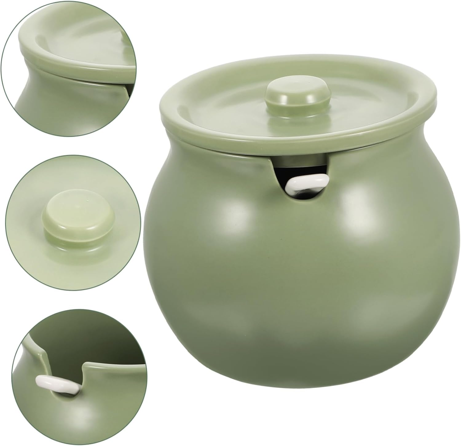 Package Include 1 x Lard Jar 1 x Spoon Characteristics -Size:14.00X13.50X12.60cm/5.50X5.31X4.95in(Pot) seasoning jars -Material:Ceramic ceramic storage jar -Color:Green seasoning jar -Size:17.00X4.50X1.00cm/6.68X1.77X0.39in(Spoon) grease jar -Special shape and texture, and , Condiment Jar is home or dinning room decoration cooking grease container. -Modern style design, and delicate, suitable for most home decoration styles ceramic coffee canister. -Enough capacity, can be used for storing flour, salt, sugar, loose tea, coffee beans and spices, etc bacon grease holder. -This ceramic canister can be placed on the tabletop, coffee table, kitchen, dining room and so on grease disposal container. -Spice Jar is a for your seasoning storage, which is practical and decorative oil disposal container.Goods Informationsugar container This is a Seasoning Storage Container, simple and beautiful, can help you store well, make your kitchen look more comfortable and tidy.grease container The design is reasonable, and Seasoning Container is convenient to use, which can bring more convenience to your cooking work