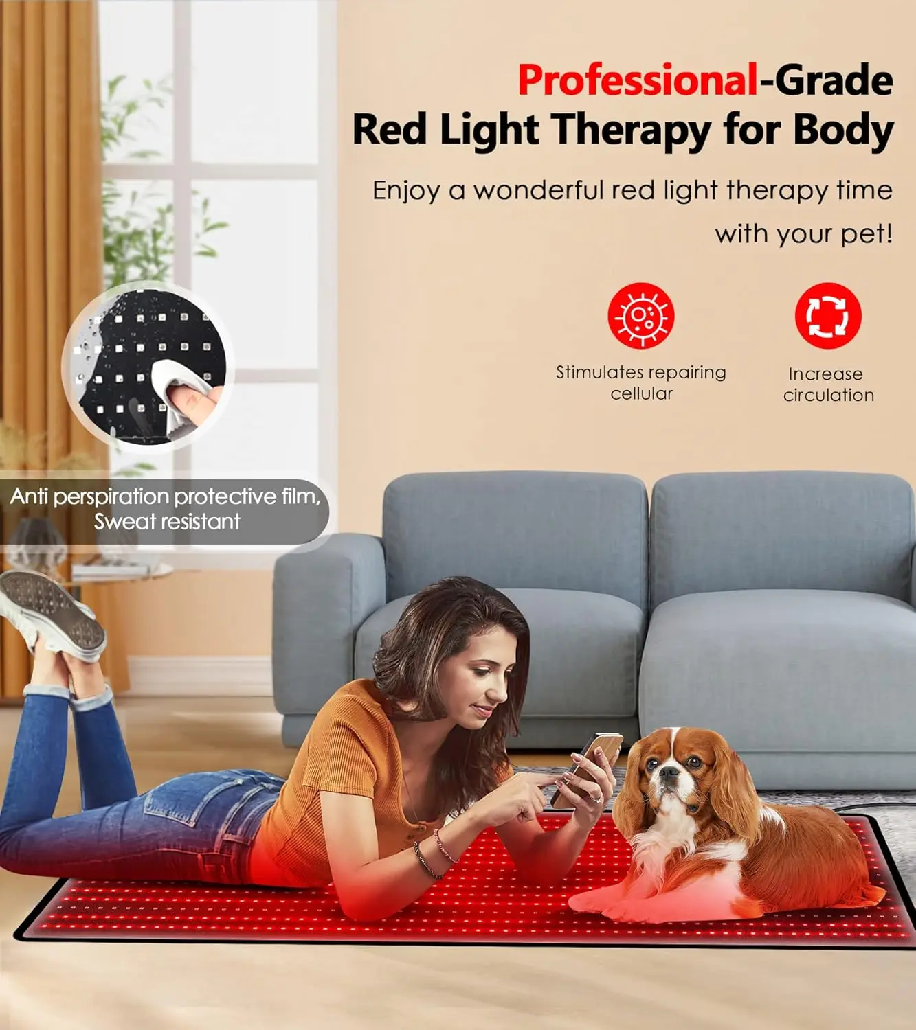 • 💡[Safer & No Side Effects] The material of New Upgraded red light heating pad is soft fabric, more softer and comfortable. We recommend not to use it more than 30 minutes each time and 1-2 times per day. Whether you want to Repair Tissue, Resolve Inflammation, Relieve Joint & Back Pain or Improve Your Sleep, This red light therapy mat is the nice choice for you.