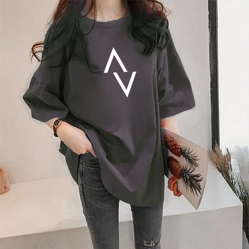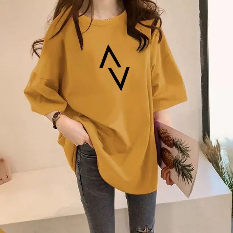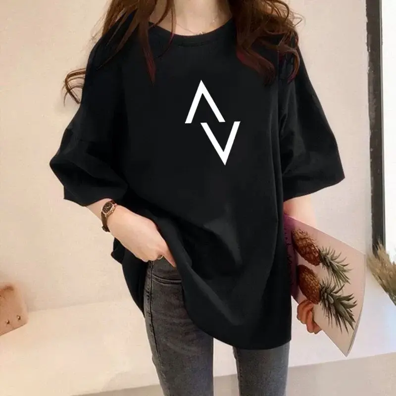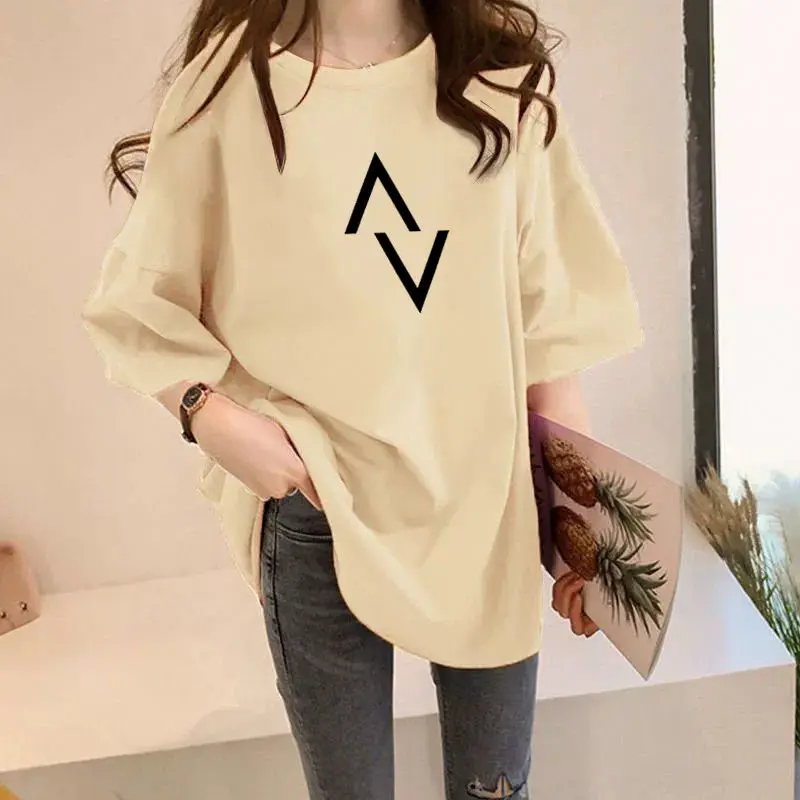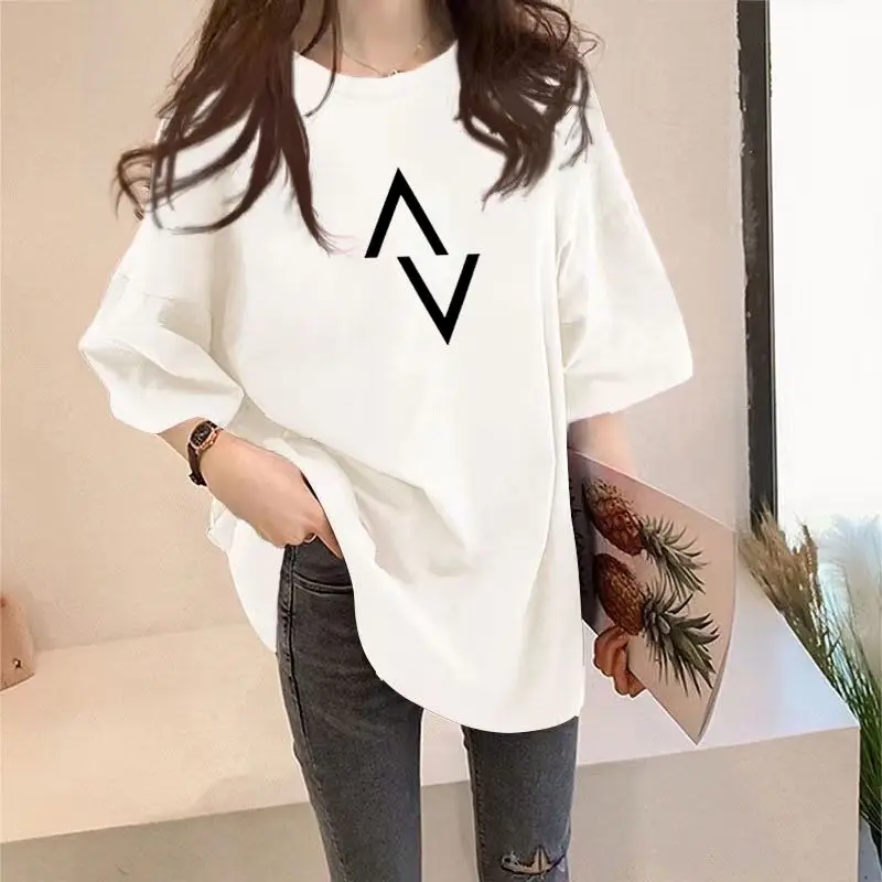 Summer Short Sleeve Crew Neck Women's Pullover Geometric Solid Color T-shirt Midi Casual Loose Comfortable All-match Tops