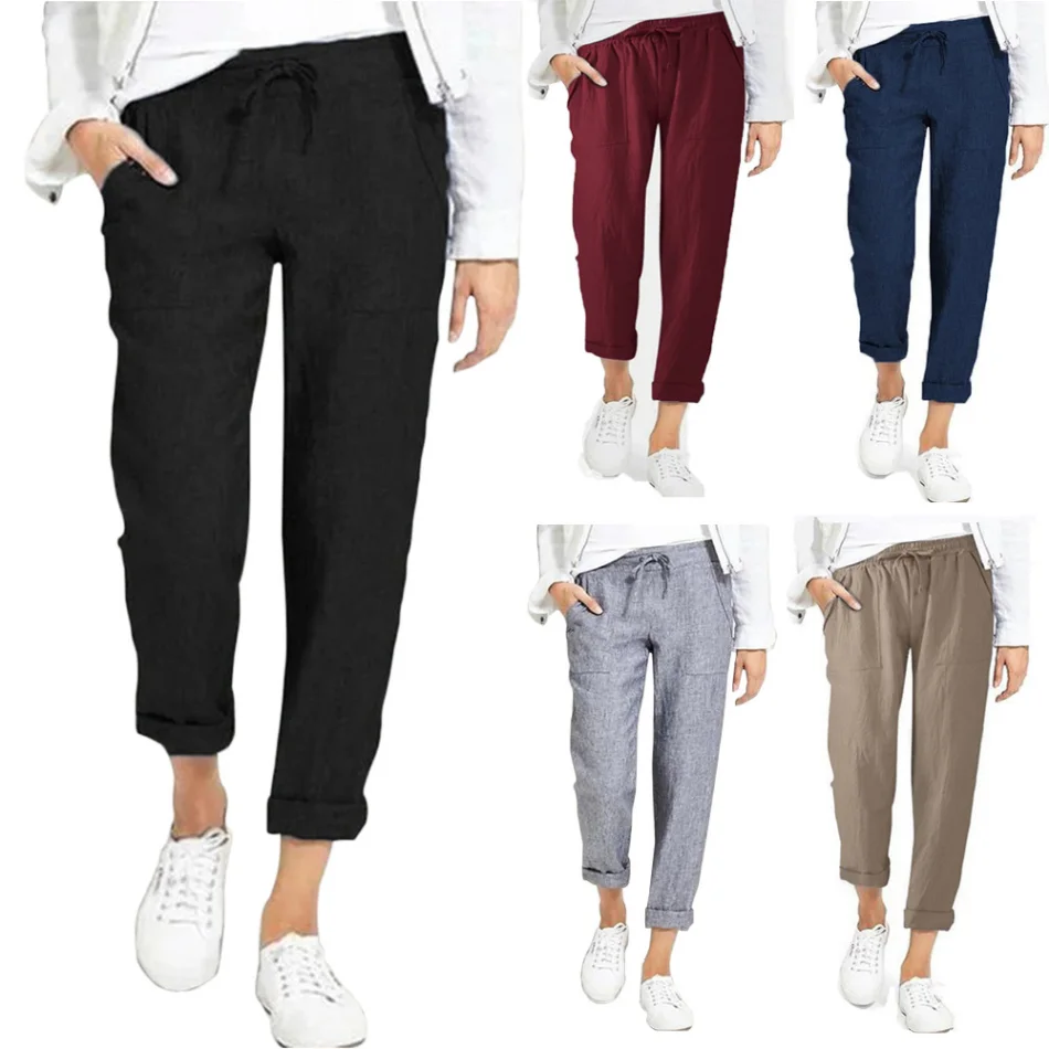 Women's Pants New In Korean Fashion Commuter High Waist Women Clothes Cotton Lace-up Pencil Wide Trousers Streetwear Black Pants