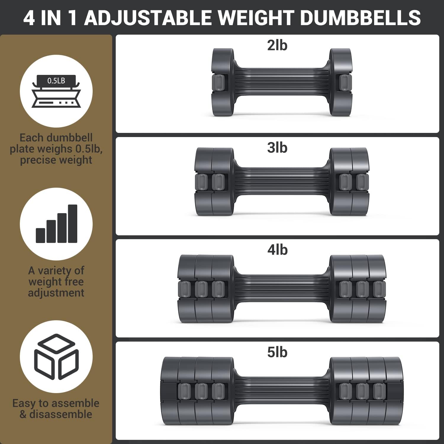 • Adjust In A Sec: Sportneer dumbbells adjustable weight innovatively constructed itself with quick multi-weight adjustment that allows you to increase/decrease the weights in an blink of an eye! Greatly amp up your training efficiency.