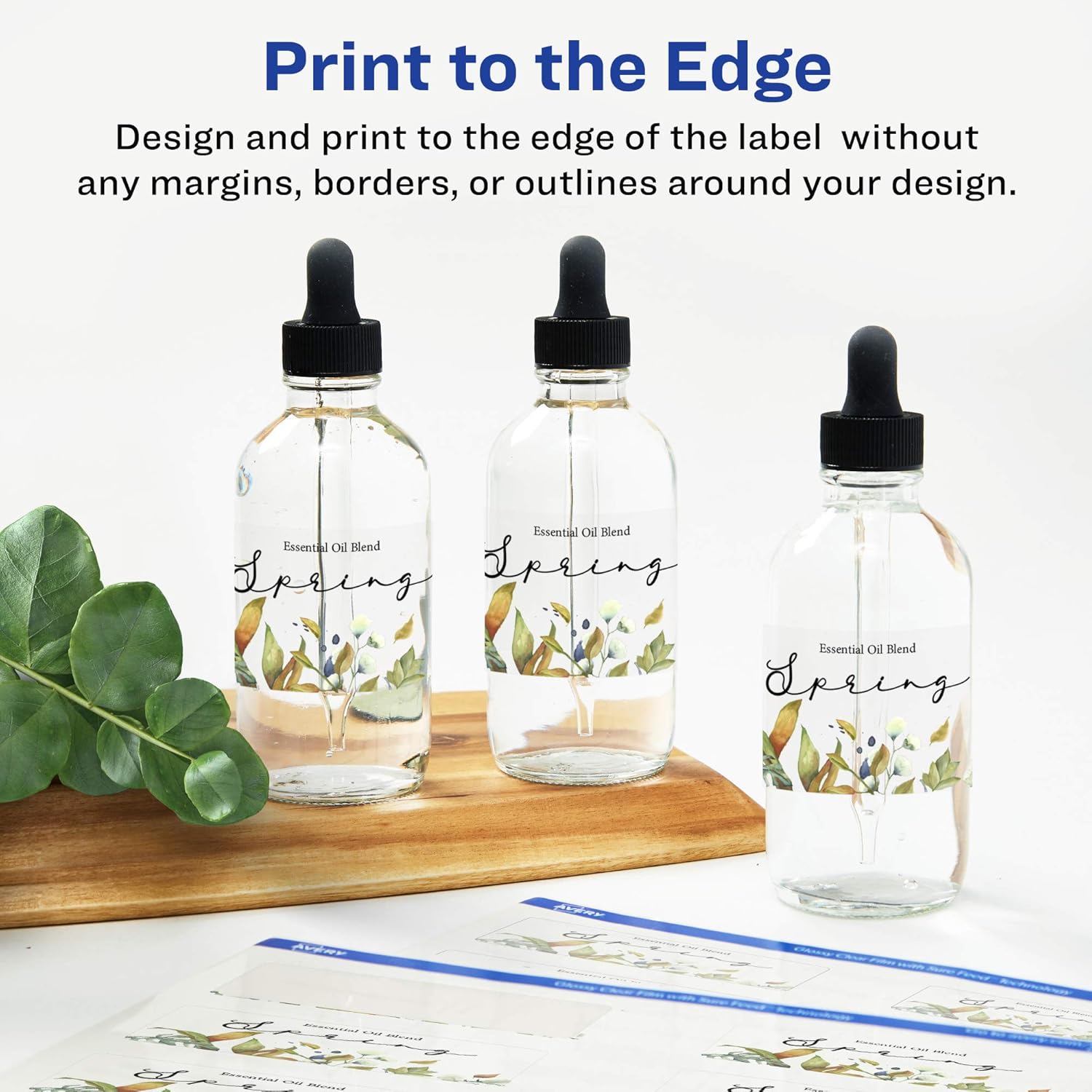 Create mailing labels, product labels, labels for food containers, soap labels, candle jar labels, body scrub labels that are absolutely clear with Avery .75" x 2.25" Glossy Clear rectangle Labels. Clear as glass with a reflective shine, Avery glossy clear labels vanish when applied to glass and metal surfaces. The transparent and glossy label material is also perfect for making the colors in your design pop and look even more vibrant on lighter surfaces. Avery rectangle labels are carefully constructed and developed with patented features to provide the best results for every project. Sure Feed technology prevents jams or smudges by creating a more reliable feed through your printer. The print-to-the-edge layout lets you print beautiful full-bleed designs that fill each blank sticker to the edge. The patented Easy Peel label design makes these labels easy to peel and quick to apply. Just bend the label sheet, peel off your labels and fold the sheet back flat. The strong permanent label adhesive makes sure that your labels stick and stay to a variety of surfaces without peeling, curling or falling off. Easily customize labels with your own designs, art, symbols and messaging by using the label templates and designs on the Avery website. The intuitive tools make it easy to add your personal touch to any project.