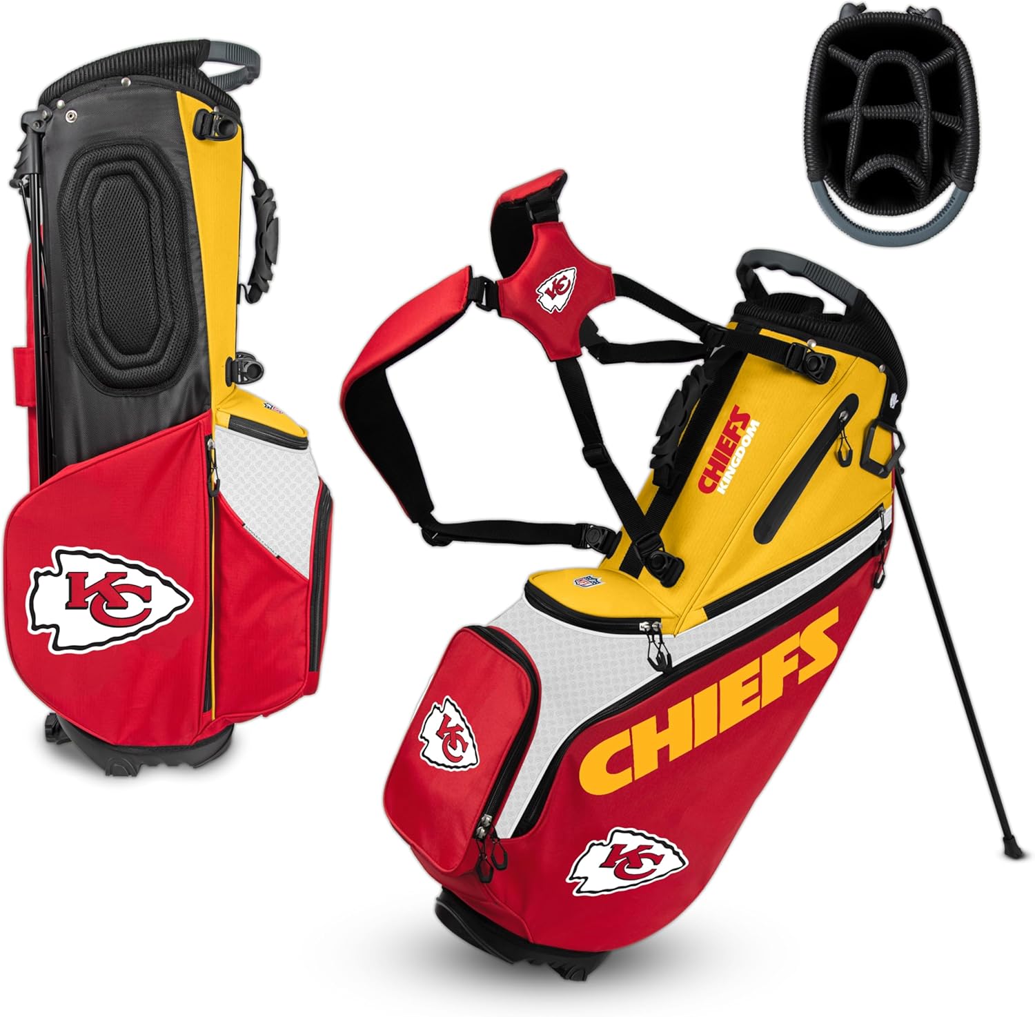 The Back Nine Stand Bag from WinCraft elevates the experience of lightweight carry bags for golfers and team fans. This next generation of golf bags from WinCraft was developed in collaboration with leading golf experts and representatives from professional and collegiate sports teams. This officially licensed bag showcases prominent logos and practical design elements. Weighing 5.25 lbs, it features an 8-way top with full-length dividers for efficient club organization, as well as removable padded shoulder straps for ease of transportation in a cart. The Back Nine Stand Bag combines comfort, functionality, and style, making it a reliable choice for golfers eager to display their team pride on the course for years to come.
