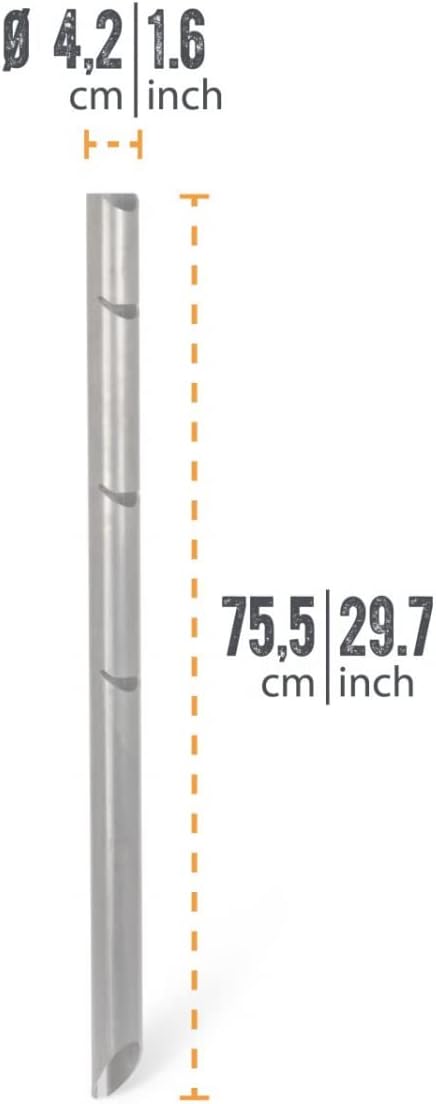 With the Petromax campfire holder for wrought iron pans, you can fry hearty pan dishes at a perfect distance from the fire. By anchoring it next to the fire pit in the ground, the steel stand leg is ready to use in no time. Then your campfire adventure can begin: Place your wrought iron pan in one of the three notches of the holder and prepare your cowboy meal at the desired height directly above the fire pit. Hearty steaks, juicy grater cakes and a fiery pasta pan sizzle with ideal heat to the perfect cooking point. The stable holder made in Germany is suitable for all wrought iron pans from Petromax and can be flexibly placed next to different fire pits. So nothing stands in the way of the rustic cooking experience over the classic campfire in the great outdoors or over a fire bowl. This makes the campfire holder for wrought iron pans the ideal equipment for cooking over the fire: Stable holder for pans over the campfire. Suitable for all Petromax wrought iron pans Proven Petromax quality made in Germany. Anchored in the ground in just a few simple steps and ready to use. Three notches for preparing stir-fry dishes at desired height above the fire. The variable holder for pans on the fire. Package includes: 1 x campfire bracket