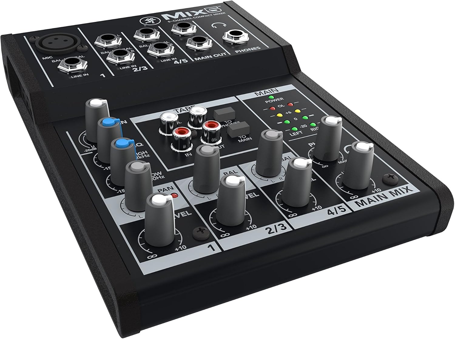 Alto Music- Why you need the Mackie Mix5 5 Channel Compact Mixer 5 Channel compact mixer perfect for on the road or for your home studio 1 mic/line inputs and 2 Stereo 1/4" Line inputs 2-band EQ with clean, precise tone shaping and Phantom power for studio condenser mics Small yet rugged and reliable The Mackie Mix5 5 Channel Compact Mixer is the perfect mixer for smaller stage shows or in the studio. This 5 Channel compact mixer has 1 mic/line inputs and 2 Stereo 1/4" Line inputs. It also has a built in 2 Band EQ on all channels with clean tone shaping and Phantom power for studio condenser mics. It also has the high headroom, low noise design Mackie preamps that make them the most popular mixer on the market. Compact, durable and affordable, it's exactly what Mackie is known for.