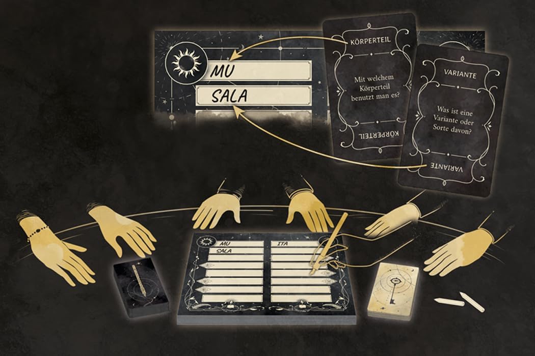 From the intermediate world, a spirit tries to communicate a secret word (object) to the living. In Ghost Writer, players slip into the role of either a spirit or a medium - so they either try to communicate a word or guess one. They compete against each other in two teams. In each team there is exactly one ghost and up to three media. In each game of Ghost Writer there is a secret word (the object you are looking for) that is known only to the two ghosts. They want to help their media guess this object first. To do this, the media of the teams play question cards one after the other, to which the ghosts then answer. But not verbal, but in writing, letter by letter. In the midst of a word, the media--once they have an idea of what the mind wants to tell them--can interrupt communication at any time so as not to betray too much to the opposing team that does not know the question. The team that guesses the term correctly first wins!