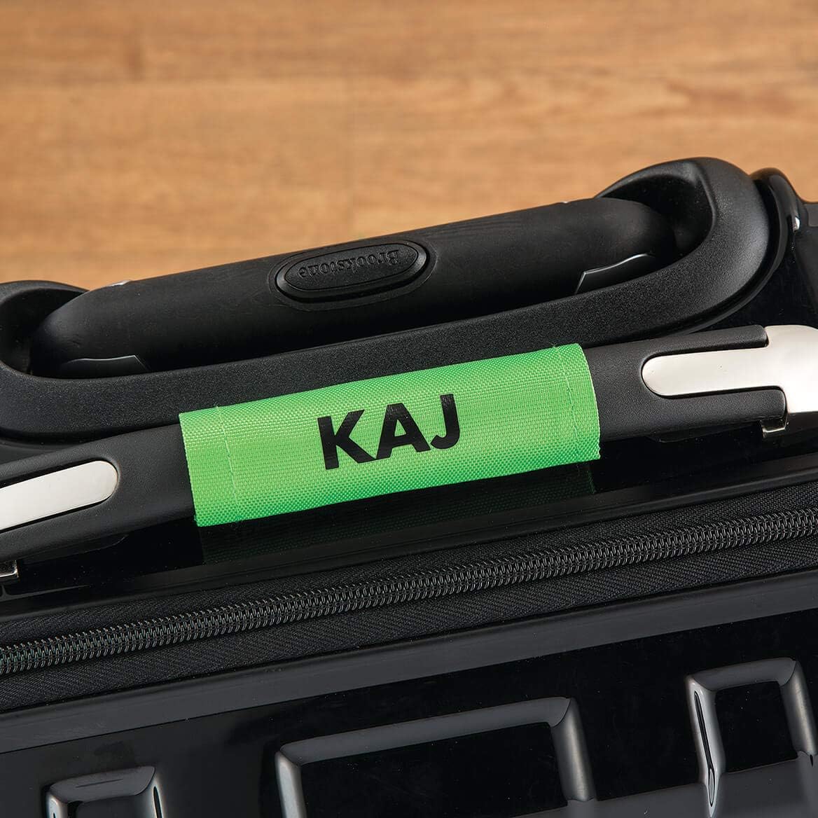 Make your luggage stand out! The bright colors of this personalized luggage handle wrap ensure your bag is easy to identify in an airport, shuttle or hotel. The durable hook-and-loop closure attaches in seconds and stays closed until you take it off. This luggage tag makes a great gift for anyone who loves to travel! Choose from blue, green, pink or yellow, personalized or plain. Personalize 1 line up to 8 letters/spaces. Luggage identifier measures 4" long x 4" wide when flat. Nylon.