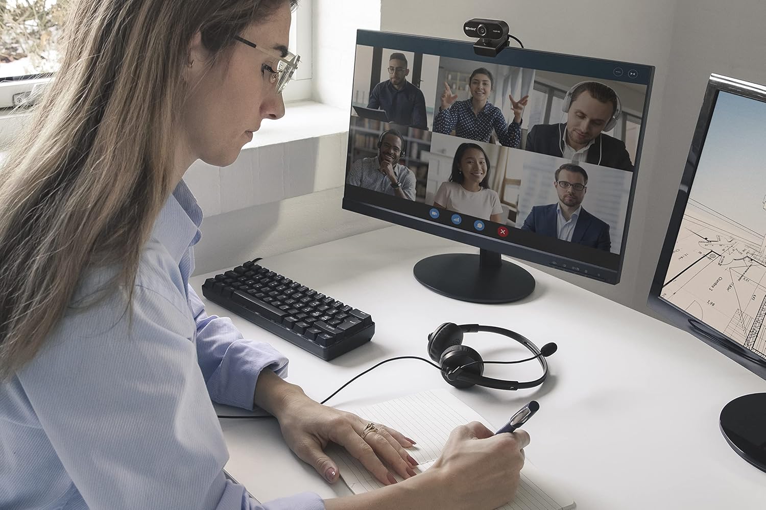 Sandberg USB Office Headset Saver connects to your computer's USB port. Playback of clear sound from Sandberg USB Office Headset Saver is perfect for internet phones. This set also features elegant in-line volume controls for quick and easy volume adjustment. Perfect for online meetings. Easy USB connection. Comfortable to wear Cable Length: 4.9 ft (1.5 m) Connector: 1 x USB A Male Plug Earphones: Driver unit: 1.2 inches (30 mm) Frequency Range: 20Hz - 20kHz Impedance: 32 Ohm Sensitivity: 105 dB Microphone: Direction:Unidirectional Frequency response: 50 Hz-15 kHz Impedance: 2.2k Ohm Sensitivity: -52dB±3dB Height 14cm Width 12cm Depth 2cm Weight 110g