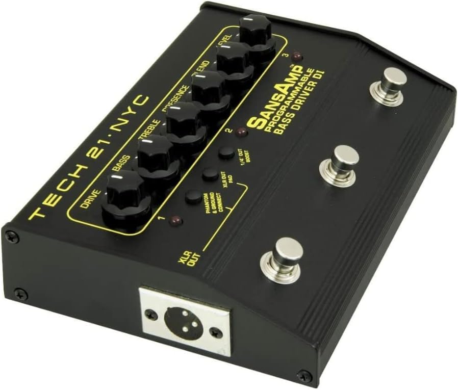 Drive Your Bass with This Programmable DI Box Tech 21, the SansAmp people, have come up with the Programmable Bass Driver DI, a 3-channel, programmable, rig-in-a-box for bassists who can't get enough of a great thing. Like the TRI-A.C. for guitar, the Bass Driver DI offers three hot tones right at your toetips. The all-analog circuitry features the same controls as its single channel predecessor: Drive, Bass, Treble, Presence, Blend and Level. Digital only in its programmability, you just tweak the knobs until you find a tone, double-tap on a footswitch, and it's saved in that channel. It's that simple. Three of your favorite tones - to go!Tech 21 Programmable Bass Driver DI Features: 3-channel programmable DI box especially for bass instruments Drive, Bass, Treble, Presence, Blend and Level controls Go live with just your Bass Driver DI straight into the PA Bounce into any studio with a Programmable Bass