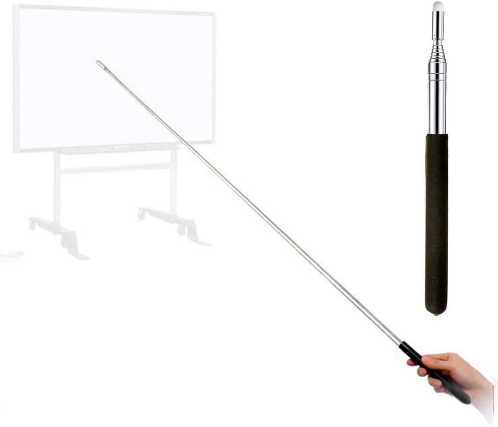 Telescopic Teachers Pointer,Teaching Pointer Stick for Classroom,Metal Hand Retractable Pointer Extended Length 25Inch, Handheld Presenter Whiteboard Pointer (Black+Silver)
