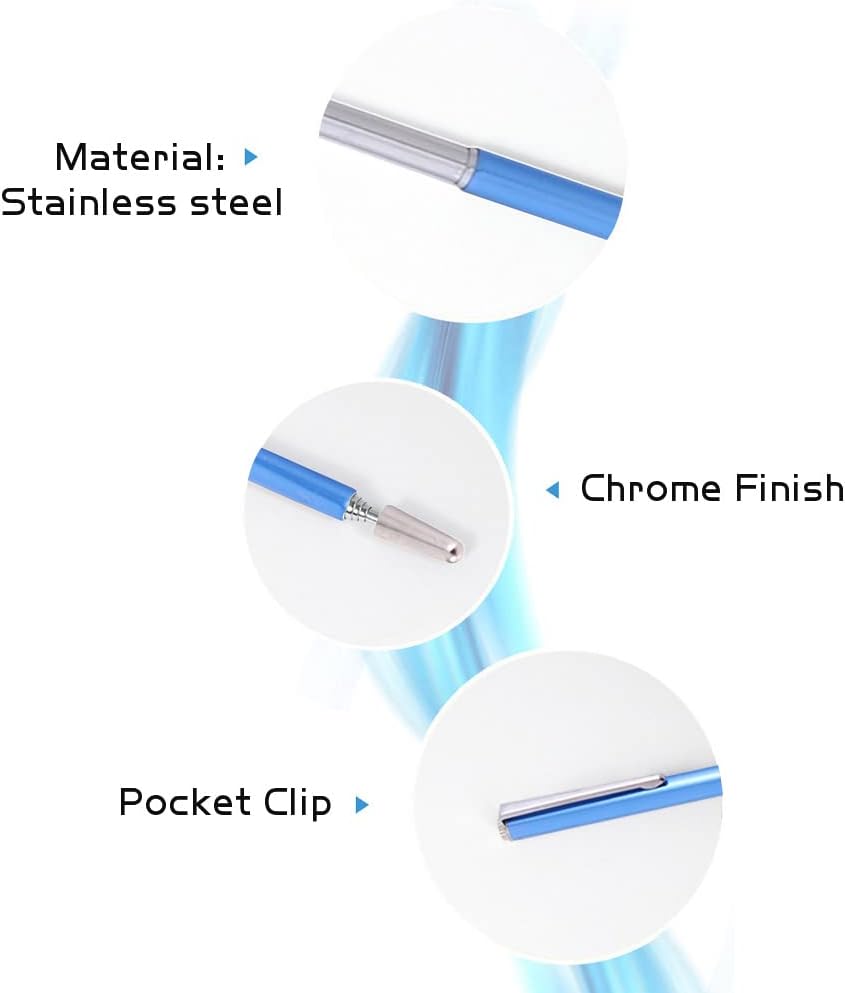 • 3.Easy to carry: 5 inches in length, can be placed in pockets, bags, drawers, etc. There is a clip on the head of the retractable pen, which can be clipped to your notebook, or jacket pocket.